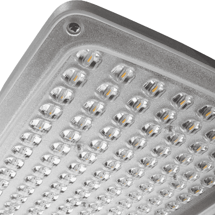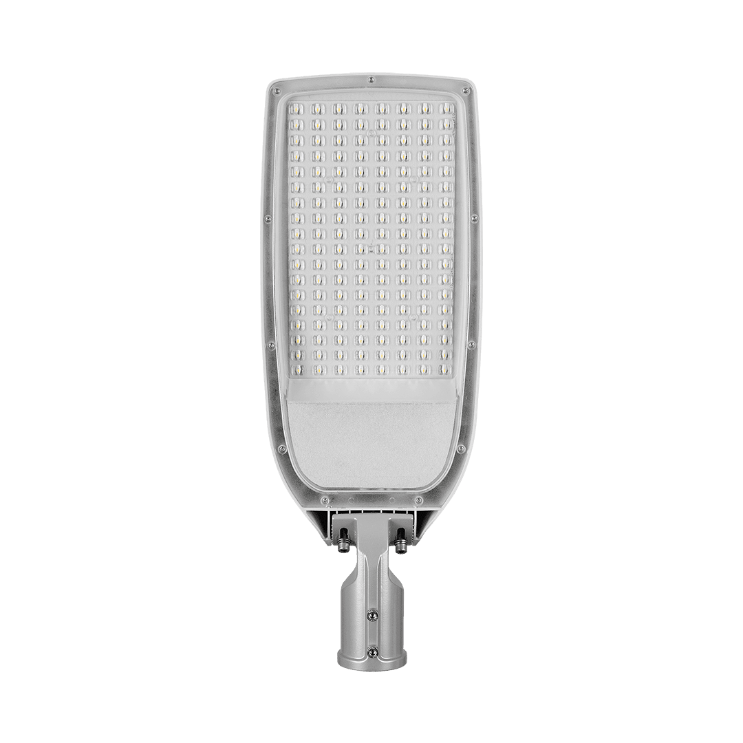 Astra LED-Straßenleuchte mit hoher Lichtausbeute (bis zu 153 lm/W) und energiesparendem, integriertem LED-Modul. Selbstreinigendes Gehäuse aus Polypropylen (PP) mit Fiberglas (GF), Aluminiumgriff. Die Fassung verwendet Richtungs-Linsenmatrizen (aus PC Polycarbonat). Die Leuchte zeichnet sich durch hohe Schutzart IP66 und mechanische Schlagfestigkeit IK08 (vandalismussicher) aus. Der integrierte, alle 5 Grad einstellbare Griff ermöglicht eine Einstellung im Bereich von: -5 bis +15 Grad (obere Befestigung an der Stange), -15 bis +5 Grad (seitliche Montage am Ausleger). Standardmäßig mit einem 0,7 m langen H07RN-F-Kabel mit IP66-Schnellanschluss ausgestattet. Leuchten der Schutzklasse II dürfen nur an einem Metallmast montiert werden. RCR-Sensor, der über eine Fernbedienung gesteuert wird.