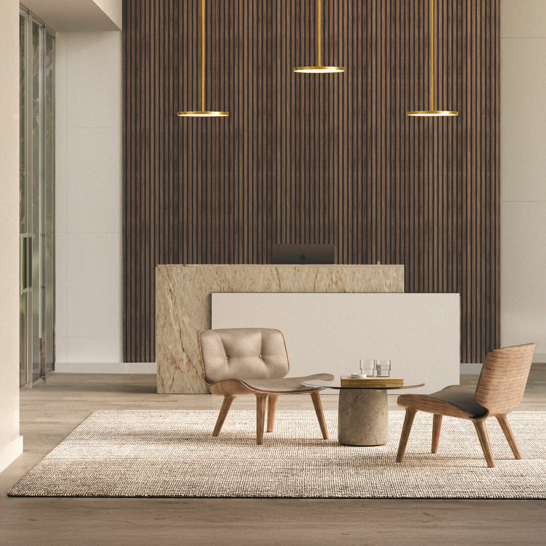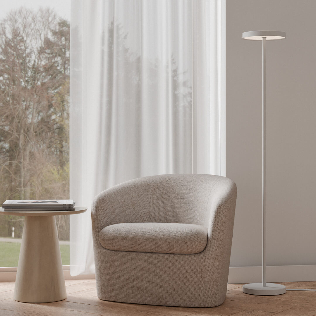 - Standversion (Ø260 mm) – mit einer Höhe von L=1500 mm – sorgt für ein weiches Zonenlicht, ideal für Lounge- oder Empfangsbereiche.